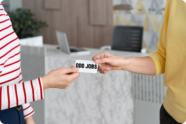Odd jobs are any kind of “help” work. Usually done for a person who asks you to do tasks for them because they are either too busy, are unable to do it for themselves, or they just need a second helping hand.